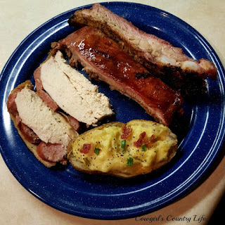 Smoked Chicken, Ribs n Twice Baked Tatoes